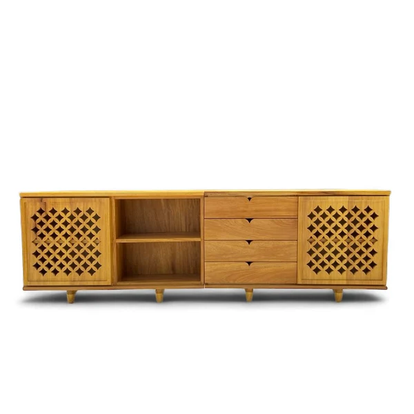 This is a TV cabinet I designed in SolidWorks. The model is a parametric assembly consisting of MDF panels. It includes proper joints and dimensions for fabrication.